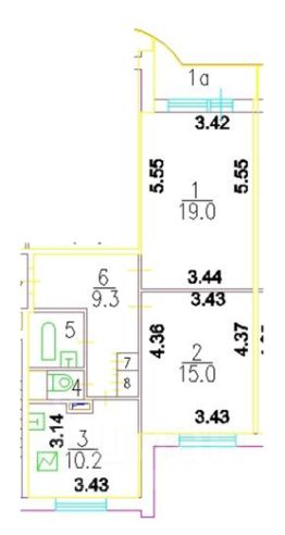 Кухня 10,2 м2, малая комната - 15 м2, большая комната - 19 м2 /комнаты изолированные/.