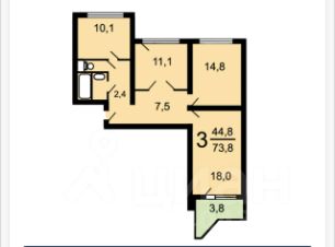Распашонка. Кухня- 10,1м2, гостиная - 18 м2, спальня 14,8 м2, кабинет / детская - 11,1 м2,
