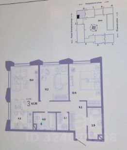 Срок сдачи: II-кв. 2026, общей площадью 62.3кв.м., без отделки.