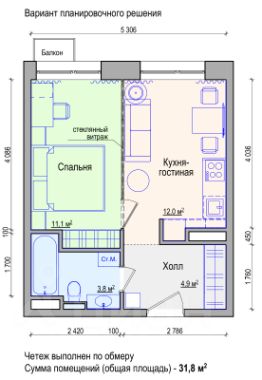 Квартира очень светлая и имеет отдельную кухню и спальню.