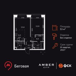 Продаётся 2-к квартира номер 479 общей площадью 53 кв.м. на 33-м этаже 46 этажного здания. Без отделки. Цена с учётом скидки.