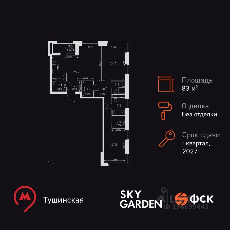 Продаётся 3-к квартира номер 6 общей площадью 83.4 кв.м. на 3-м этаже 44 этажного здания. Без отделки. Цена с учётом скидки.