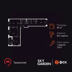 Продаётся 4-к квартира номер 336 общей площадью 85.4 кв.м. на 2-м этаже 26 этажного здания. Без отделки. Цена с учётом скидки.