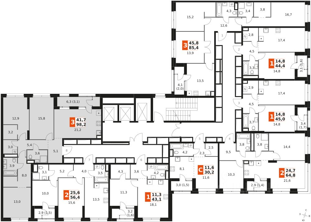 Продаётся 3-к квартира номер 343 общей площадью 98.2 кв.м. на 2-м этаже 26 этажного здания. Без отделки. Цена с учётом скидки.
