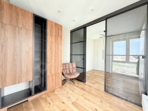 Общая площадь квартиры составляет 80 кв. м, включая просторную кухню-гостиную площадью 19 кв. м, имеется мастер-спальня со своей гардеробной и своим санузлом (ванная), гостевой санузел с душевой кабиной, подсобное помещение: кладовка, гардеробная, детская спальня и кабинет. Квартира расположена на 26 этаже 30-этажного дома, что обеспечивает потрясающие виды и тишину. Высота потолков составляет 2,9 метра, создавая ощущение простора и комфорта.