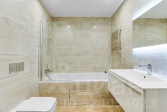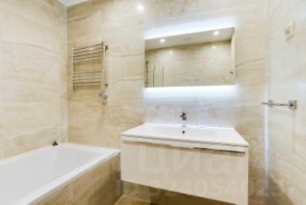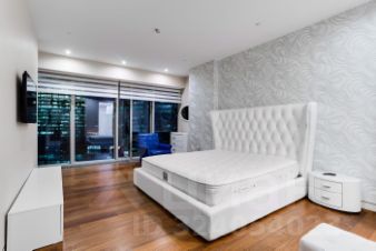 К спальне примыкает гардеробная и ванная комната. Одна из особенностей ванной, —мраморная отделка. Чашеобразная ванна устанавливается в центре помещения для лучшего обзора. Панорамное остекление позволяет совмещать водные процедуры с созерцанием красот столицы. Ванные полностью укомплектованы сантехникой европейских производителей.