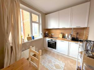 В квартире произведен качественный ремонт с заменой электропроводки. Теплый пол на кухне и ванной комнате. Установлен бойлер. Для покупателя остается встроенная кухонная мебель с кухонной техникой (индукционная варочная панель, вытяжка, встраиваемая стиральная машинка). Встраиваемый просторный шкаф купе в зале и шкаф в коридоре.
