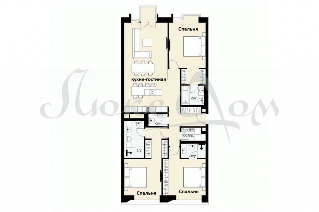 Планировка: кухня-гостиная, 3 спальни с гардеробной и с\у, гостевой с\у.