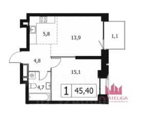 Общая площадь квартиры 45.4. м². Расположенная на 6 этаже 13-этажного монолитно-кирпичного дома, она сочетает в себе уют, функциональность и престижное расположение.