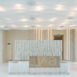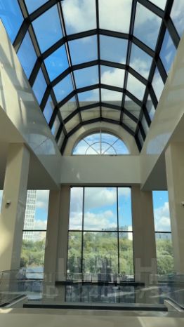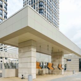 Особенность центральной входной группы — двухуровневый атриум с витражными окнами и стеклянным световым фонарём на крыше. В лобби расположены лаунж-зона, коворкинг, детский клуб. Высота потолков в нем составляет более 6 м. Украшением лобби стал декоративный водопад. Во входной группе также находятся стойка ресепшен с кофе-пойнтом, вендинговые аппараты, цифровые почтовые ящики, банкомат.