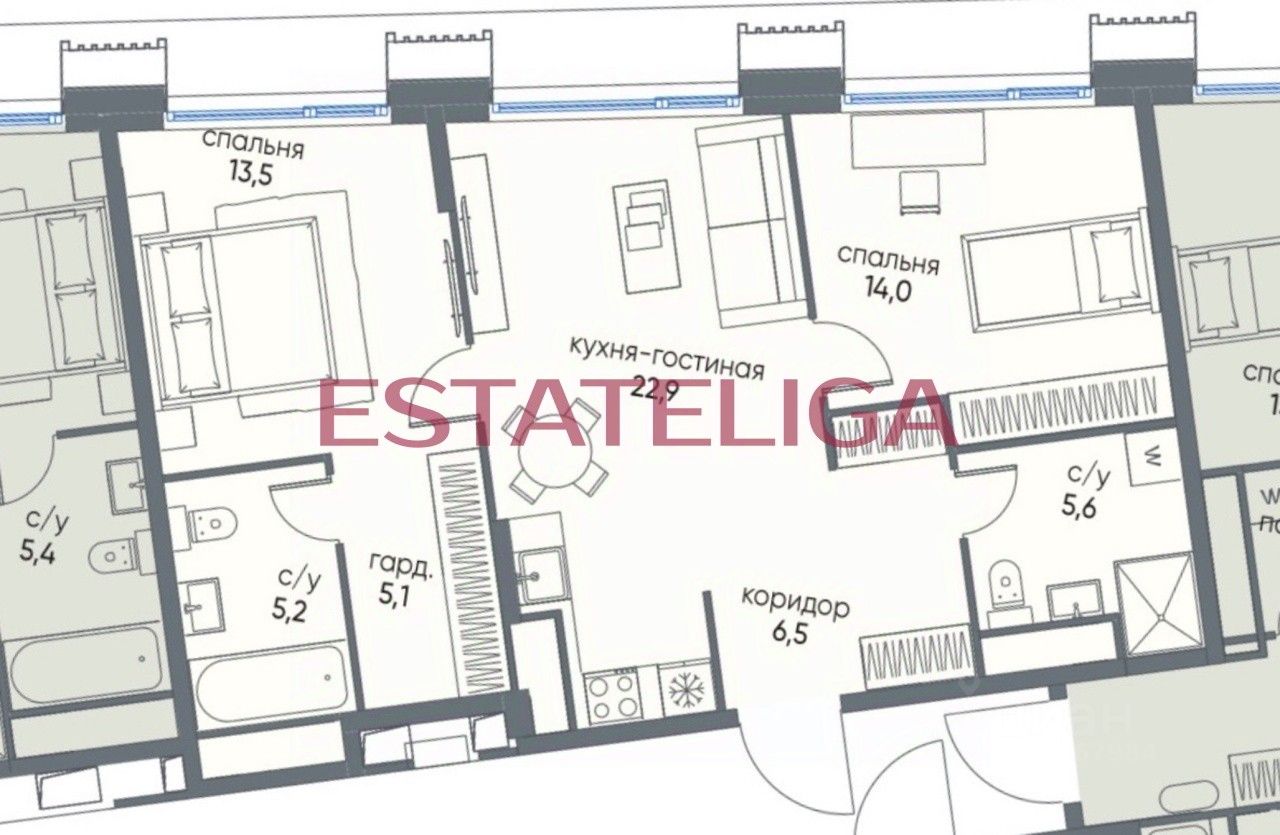 • 2 просторные спальни