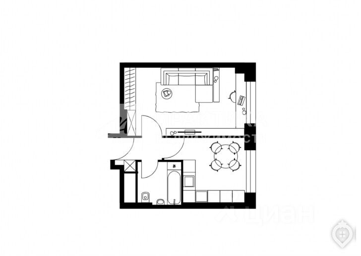 Кухня-гостинная 15 м2, комната 20м2, просторный сан.узел (совместный)