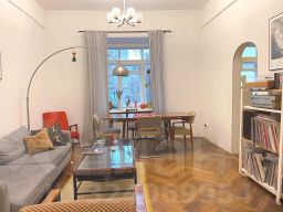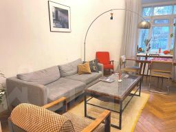 Предлагается нестандартная двухкомнатная изолированная квартира 67,6 кв.м с кухней 9 метров в сталинском фасадном доме в районе Сокол. Кухня и гостиная соединены арочным проходом. Коридор состоит из трех секций: в первой секции с вешалкой дверь в большой санузел, из средней секции широкая арка ведет в гостиную-кухню, третья секция с дверью отделяет спальню, в которой имеются два вместительных стенных шкафа под прямым углом и кладовая за ними (можно разместить гардеробную). Все три родных двойных деревянных окна с форточками и широкими подоконниками выходят в тихий двор. Квартира оформлена в светлых тонах с контрастными элементами. Сочетание родных окон, паркетного пола с современным подходом в отделке стен, очень высокие 3,30 м потолки придают квартире неповторимое очарование. В подъезде два выхода: во двор и на улицу, есть места для хранения колясок и велосипедов. В закрытом дворе вы всегда найдете свободное место для парковки. До станции метро Стрешнево 9 минут пешком, до метро Сокол 17 минут пешком. До метро Щукинская - 20 минут пешком. За 10 минут на электробусе можно добраться до метро Динамо. Отличная транспортная доступность. В пешей доступности находятся знаменитый поселок художников "Сокол", парк Покровское-Стрешнево. В округе развитая инфраструктура с магазинами, школами, детсадами, поликлиниками. 1 взрослый собственник. Документы готовы к сделке.