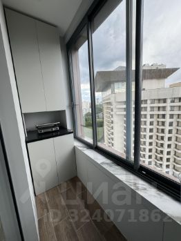 На балконе расположена система хранения различной утвари с возможностью установки электрического гриля.