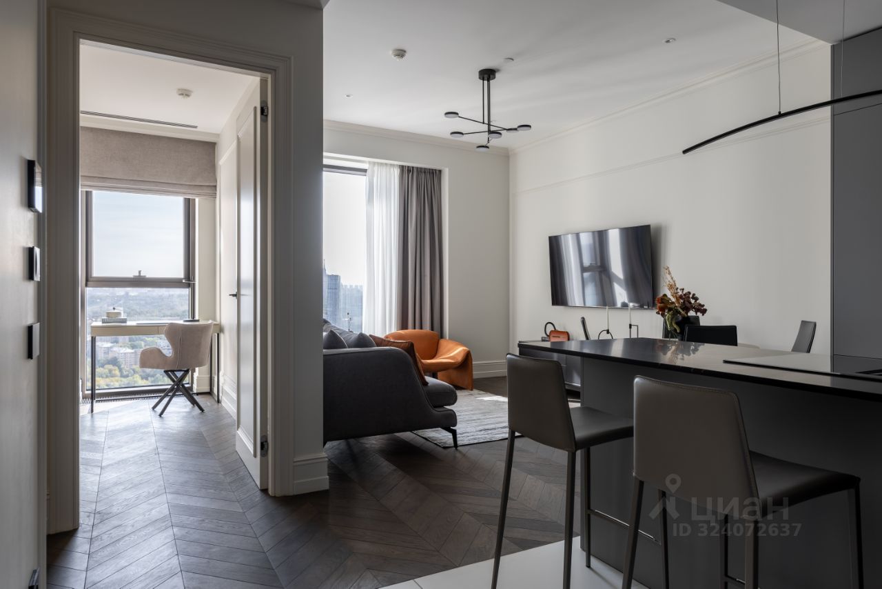 Прекрасные апартаменты на 28 этаже с изысканной отделкой, высокими потолками (3,2 м) и стильным интерьером в премиальном комплексе Поклонная 9. Прекрасная отделка вне времени. Дизайнерский ремонт. Дорогой текстиль, шторы, тюль и карнизы во всех комнатах с электроприводом.Удобное управление контроля охлаждения и обогрева из каждой комнаты при помощи сенсорной панели.