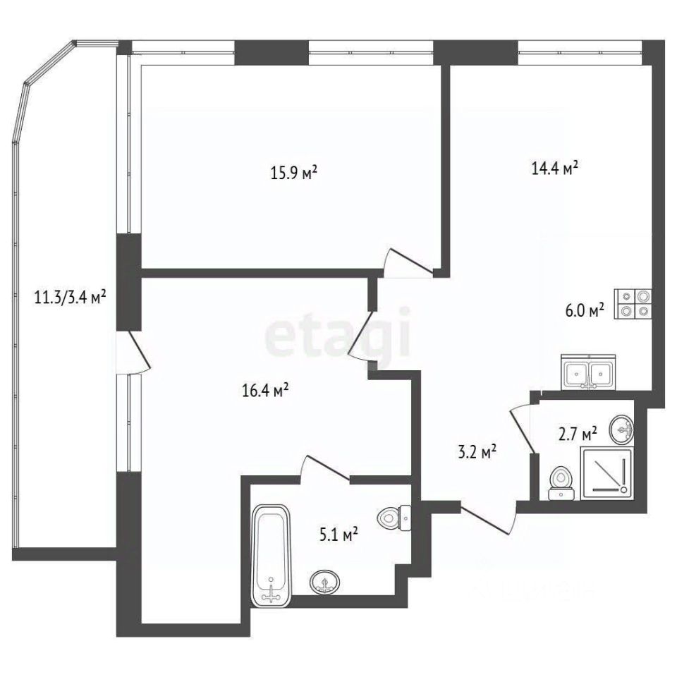 - 2 санузла