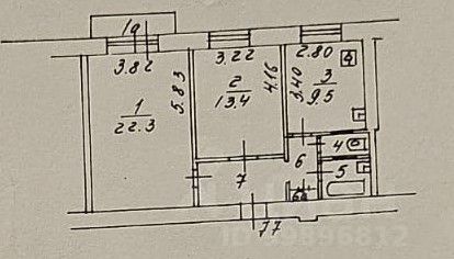 Кухня: 9, 5 кв.м., 1 совмещенный санузел. Высота потолка 2,65 м.