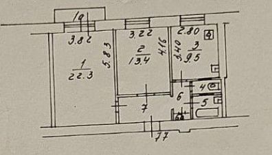 Площадь квартиры 56,6 кв.м., в т.ч. жилая 35,7 кв.м. (гостиная 22,3 кв.м., спальня 13,4 кв.м.)