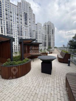 Квартира расположена на высоком этаже с панорамными окнами, вид на Москву. Просторная кухня-гостиная.