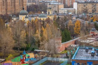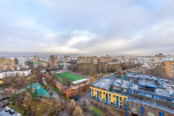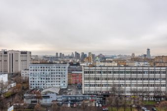 Большие окна наполняют квартиры светом и открывают панорамные виды на Москву — особенно впечатляющие в вечерние часы.