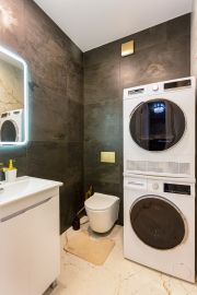 Продается двухкомнатная видовая квартира с дизайнерским ремонтом и большой кухней (18м2). Ремонт выполнен из качественных материалов в 2025 году, установлена хорошая сантехника, есть кондиционер на кухне, бризеры в комнатах, водонагреватель на случай ежегодного профилактического выключения горячей воды. Два раздельных санузла, гардеробная комната.