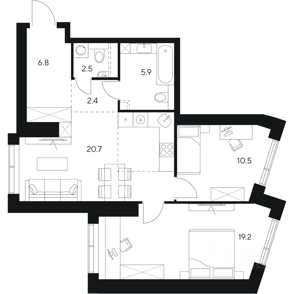 20,7 м²