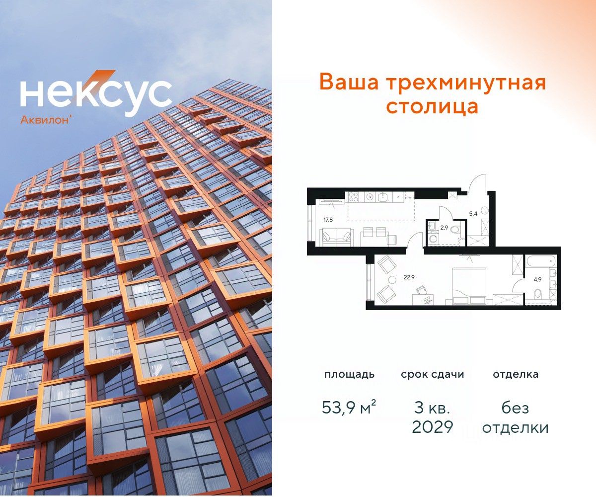 Продажа от застройщика. О проекте: В основе Несус Аквилон лежит принцип трехминутного города, где вся жизнь: работа, отдых, здоровье, общение и культура сосредоточены в шаговой доступности. Он не просто экономит время, а кардинально перераспределяет его. В этих условиях главным логистическим узлом становится лифт, который в считанные секунды переносит из квартиры в собственный фитнес-рум, панорамный двор или современный коворкинг. Здесь вы сами решаете: оказаться в эпицентре событий, чувствуя пульс мегаполиса, или наслаждаться тишиной и приватностью своего пространства. И главное — вы можете переключаться, находя идеальный баланс каждый день. Несус Аквилон - ваша трехминутная столица! Транспортная доступность Несус Аквилон дарит независимость от расстояний и логистики. Ваше время теперь принадлежит только вам меньше минуты до метро Молодежная 2 минуты до Рублевского шоссе 10 минут до Проспекта Багратиона 15 минут до Москва-Сити 10 минут до МКАД 20 минут до ТТК Архитектура 46-этажная башня станет новой архитектурной доминантой, символизирующей динамику и технологичность современной жизни.Комбинация алюминиевых кассет, стеклофибробетона и витражного остекления фасада создает монументальную оболочку, а теплая цветовая гамма добавляет масштабной форме визуальной теплоты. Три разных по характеру стороны башни — от строгой "зубчатой" геометрии до живописных эркеров — создают многогранный, ритмичный образ, дополняемый невесомыми балконами со стеклянным ограждением. Архитектура проекта живет в диалоге с городом: променад вдоль парящего стилобата со стрит-ретейлом становится естественным продолжением общественного пространства. Планировки в концепции Разумные метры Мы создали квартиры, где пространство работает на ваш комфорт. В основе концепции "Разумные метры" правильная геометрия помещений и тщательно продуманные эргономичные решения. - Высота потолков до 3,55 метров - Многообразие планировок: от студий до четырехкомнатных квартир классического и евро-формата - Многофункциональные пространства: кухни-гостиные для приема гостей и зонированные мастер-спальни - Продуманная инфраструктура быта: отдельные постирочные и гостевые санузлы - Удобные системы хранения: встроенные ниши и гардеробные зоны - Уникальные форматы: пентхаусы, комнаты с двумя окнами, угловое панорамное остекление - Возможность открытия окон на всех высотах Для студий и однокомнатных квартир мы предлагаем готовое решение — отделку White box, позволяющую сразу приступить к чистовому ремонту на ваш вкус. Для остальных планировок предусмотрена черновая отделка, чтобы воплотить все интерьерные пожелания. Здесь пространство адаптируется под ваш образ жизни, а не вы подстраиваетесь под планировку. Приватное благоустройство Скрытый на виду панорамный двор-терраса, расположенный на высоте 7 метров, объединил внутреннюю камерность и внешнюю динамику городской жизни. - Многоуровневое озеленение с всесезонными композициями, сохраняющими декоратив