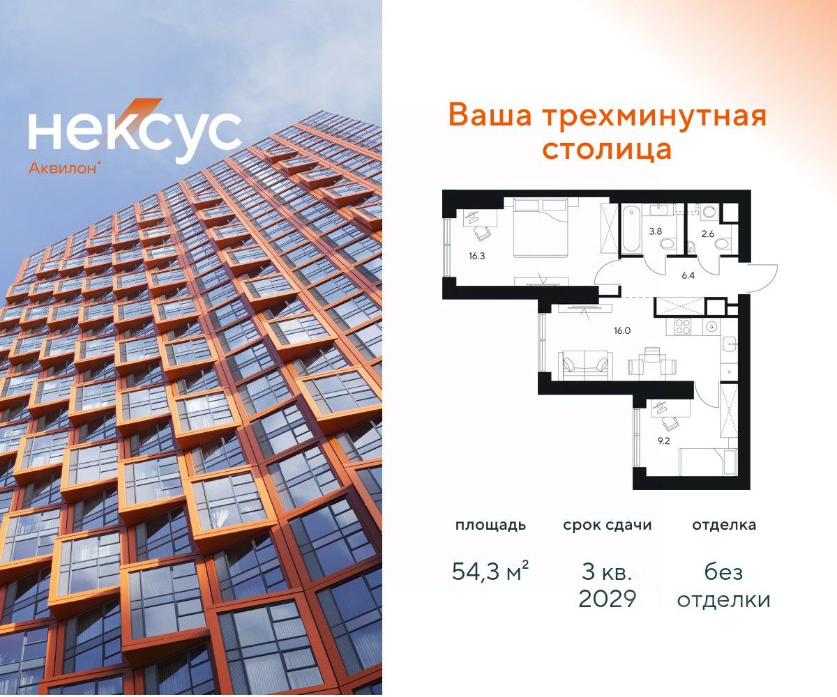 Продажа от застройщика. О проекте: В основе Несус Аквилон лежит принцип трехминутного города, где вся жизнь: работа, отдых, здоровье, общение и культура сосредоточены в шаговой доступности. Он не просто экономит время, а кардинально перераспределяет его. В этих условиях главным логистическим узлом становится лифт, который в считанные секунды переносит из квартиры в собственный фитнес-рум, панорамный двор или современный коворкинг. Здесь вы сами решаете: оказаться в эпицентре событий, чувствуя пульс мегаполиса, или наслаждаться тишиной и приватностью своего пространства. И главное — вы можете переключаться, находя идеальный баланс каждый день. Несус Аквилон - ваша трехминутная столица! Транспортная доступность Несус Аквилон дарит независимость от расстояний и логистики. Ваше время теперь принадлежит только вам меньше минуты до метро Молодежная 2 минуты до Рублевского шоссе 10 минут до Проспекта Багратиона 15 минут до Москва-Сити 10 минут до МКАД 20 минут до ТТК Архитектура 46-этажная башня станет новой архитектурной доминантой, символизирующей динамику и технологичность современной жизни.Комбинация алюминиевых кассет, стеклофибробетона и витражного остекления фасада создает монументальную оболочку, а теплая цветовая гамма добавляет масштабной форме визуальной теплоты. Три разных по характеру стороны башни — от строгой "зубчатой" геометрии до живописных эркеров — создают многогранный, ритмичный образ, дополняемый невесомыми балконами со стеклянным ограждением. Архитектура проекта живет в диалоге с городом: променад вдоль парящего стилобата со стрит-ретейлом становится естественным продолжением общественного пространства. Планировки в концепции Разумные метры Мы создали квартиры, где пространство работает на ваш комфорт. В основе концепции "Разумные метры" правильная геометрия помещений и тщательно продуманные эргономичные решения. - Высота потолков до 3,55 метров - Многообразие планировок: от студий до четырехкомнатных квартир классического и евро-формата - Многофункциональные пространства: кухни-гостиные для приема гостей и зонированные мастер-спальни - Продуманная инфраструктура быта: отдельные постирочные и гостевые санузлы - Удобные системы хранения: встроенные ниши и гардеробные зоны - Уникальные форматы: пентхаусы, комнаты с двумя окнами, угловое панорамное остекление - Возможность открытия окон на всех высотах Для студий и однокомнатных квартир мы предлагаем готовое решение — отделку White box, позволяющую сразу приступить к чистовому ремонту на ваш вкус. Для остальных планировок предусмотрена черновая отделка, чтобы воплотить все интерьерные пожелания. Здесь пространство адаптируется под ваш образ жизни, а не вы подстраиваетесь под планировку. Приватное благоустройство Скрытый на виду панорамный двор-терраса, расположенный на высоте 7 метров, объединил внутреннюю камерность и внешнюю динамику городской жизни. - Многоуровневое озеленение с всесезонными композициями, сохраняющими декоратив
