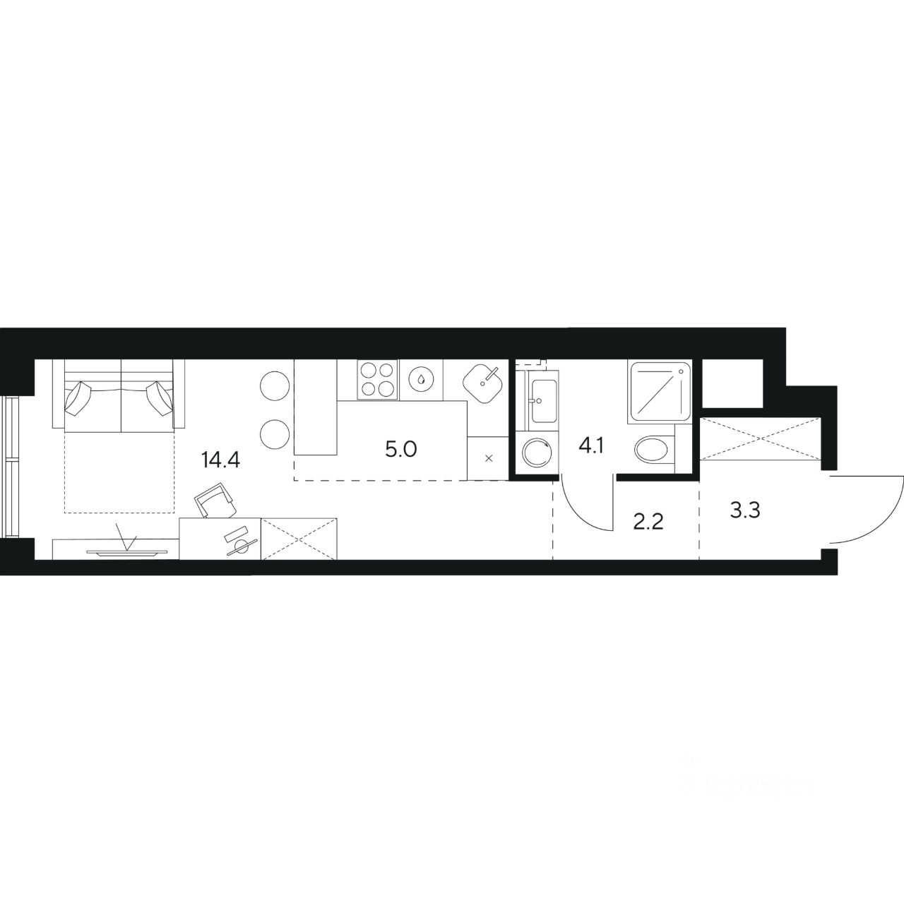 Жилая площадь14,4 м²