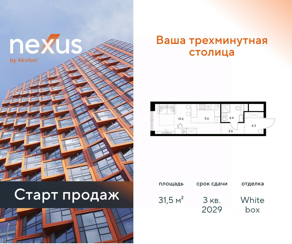 Продажа от застройщика. О проекте: В основе NEXUS by Akvilon лежит принцип трехминутного города, где вся жизнь: работа, отдых, здоровье, общение и культура сосредоточены в шаговой доступности. Он не просто экономит время, а кардинально перераспределяет его. В этих условиях главным логистическим узлом становится лифт, который в считанные секунды переносит из квартиры в собственный фитнес-рум, панорамный двор или современный коворкинг. Здесь вы сами решаете: оказаться в эпицентре событий, чувствуя пульс мегаполиса, или наслаждаться тишиной и приватностью своего пространства. И главное — вы можете переключаться, находя идеальный баланс каждый день. NEXUS by Akvilon - ваша трехминутная столица! Транспортная доступность NEXUS дарит независимость от расстояний и логистики. Ваше время теперь принадлежит только вам меньше минуты до метро Молодежная 2 минуты до Рублевского шоссе 10 минут до Проспекта Багратиона 15 минут до Москва-Сити 10 минут до МКАД 20 минут до ТТК Архитектура 46-этажная башня станет новой архитектурной доминантой, символизирующей динамику и технологичность современной жизни.Комбинация алюминиевых кассет, стеклофибробетона и витражного остекления фасада создает монументальную оболочку, а теплая цветовая гамма добавляет масштабной форме визуальной теплоты. Три разных по характеру стороны башни — от строгой "зубчатой" геометрии до живописных эркеров — создают многогранный, ритмичный образ, дополняемый невесомыми балконами со стеклянным ограждением. Архитектура проекта живет в диалоге с городом: променад вдоль парящего стилобата со стрит-ретейлом становится естественным продолжением общественного пространства. Планировки в концепции Разумные метры Мы создали квартиры, где пространство работает на ваш комфорт. В основе концепции "Разумные метры" правильная геометрия помещений и тщательно продуманные эргономичные решения. - Высота потолков до 3,55 метров - Многообразие планировок: от студий до четырехкомнатных квартир классического и евро-формата - Многофункциональные пространства: кухни-гостиные для приема гостей и зонированные мастер-спальни - Продуманная инфраструктура быта: отдельные постирочные и гостевые санузлы - Удобные системы хранения: встроенные ниши и гардеробные зоны - Уникальные форматы: пентхаусы, комнаты с двумя окнами, угловое панорамное остекление - Возможность открытия окон на всех высотах Для студий и однокомнатных квартир мы предлагаем готовое решение — отделку White box, позволяющую сразу приступить к чистовому ремонту на ваш вкус. Для остальных планировок предусмотрена черновая отделка, чтобы воплотить все интерьерные пожелания. Здесь пространство адаптируется под ваш образ жизни, а не вы подстраиваетесь под планировку. Приватное благоустройство Скрытый на виду панорамный двор-терраса, расположенный на высоте 7 метров, объединил внутреннюю камерность и внешнюю динамику городской жизни. - Многоуровневое озеленение с всесезонными композициями, сохраняющими декоративно