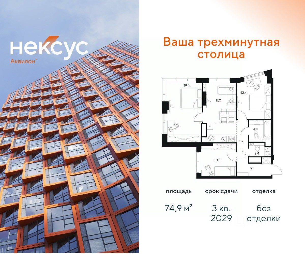 Продажа от застройщика. О проекте: В основе Несус Аквилон лежит принцип трехминутного города, где вся жизнь: работа, отдых, здоровье, общение и культура сосредоточены в шаговой доступности. Он не просто экономит время, а кардинально перераспределяет его. В этих условиях главным логистическим узлом становится лифт, который в считанные секунды переносит из квартиры в собственный фитнес-рум, панорамный двор или современный коворкинг. Здесь вы сами решаете: оказаться в эпицентре событий, чувствуя пульс мегаполиса, или наслаждаться тишиной и приватностью своего пространства. И главное — вы можете переключаться, находя идеальный баланс каждый день. Несус Аквилон - ваша трехминутная столица! Транспортная доступность Несус Аквилон дарит независимость от расстояний и логистики. Ваше время теперь принадлежит только вам меньше минуты до метро Молодежная 2 минуты до Рублевского шоссе 10 минут до Проспекта Багратиона 15 минут до Москва-Сити 10 минут до МКАД 20 минут до ТТК Архитектура 46-этажная башня станет новой архитектурной доминантой, символизирующей динамику и технологичность современной жизни.Комбинация алюминиевых кассет, стеклофибробетона и витражного остекления фасада создает монументальную оболочку, а теплая цветовая гамма добавляет масштабной форме визуальной теплоты. Три разных по характеру стороны башни — от строгой "зубчатой" геометрии до живописных эркеров — создают многогранный, ритмичный образ, дополняемый невесомыми балконами со стеклянным ограждением. Архитектура проекта живет в диалоге с городом: променад вдоль парящего стилобата со стрит-ретейлом становится естественным продолжением общественного пространства. Планировки в концепции Разумные метры Мы создали квартиры, где пространство работает на ваш комфорт. В основе концепции "Разумные метры" правильная геометрия помещений и тщательно продуманные эргономичные решения. - Высота потолков до 3,55 метров - Многообразие планировок: от студий до четырехкомнатных квартир классического и евро-формата - Многофункциональные пространства: кухни-гостиные для приема гостей и зонированные мастер-спальни - Продуманная инфраструктура быта: отдельные постирочные и гостевые санузлы - Удобные системы хранения: встроенные ниши и гардеробные зоны - Уникальные форматы: пентхаусы, комнаты с двумя окнами, угловое панорамное остекление - Возможность открытия окон на всех высотах Для студий и однокомнатных квартир мы предлагаем готовое решение — отделку White box, позволяющую сразу приступить к чистовому ремонту на ваш вкус. Для остальных планировок предусмотрена черновая отделка, чтобы воплотить все интерьерные пожелания. Здесь пространство адаптируется под ваш образ жизни, а не вы подстраиваетесь под планировку. Приватное благоустройство Скрытый на виду панорамный двор-терраса, расположенный на высоте 7 метров, объединил внутреннюю камерность и внешнюю динамику городской жизни. - Многоуровневое озеленение с всесезонными композициями, сохраняющими декоратив