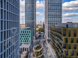 Проектом предусмотрено многоуровневое благоустройство территории с зонами для прогулок и детскими площадками. Фитнес центр, скульптурный парк, джаз-гостиная. Смотровые площадки на крышах небоскребов для жителей комплекса.