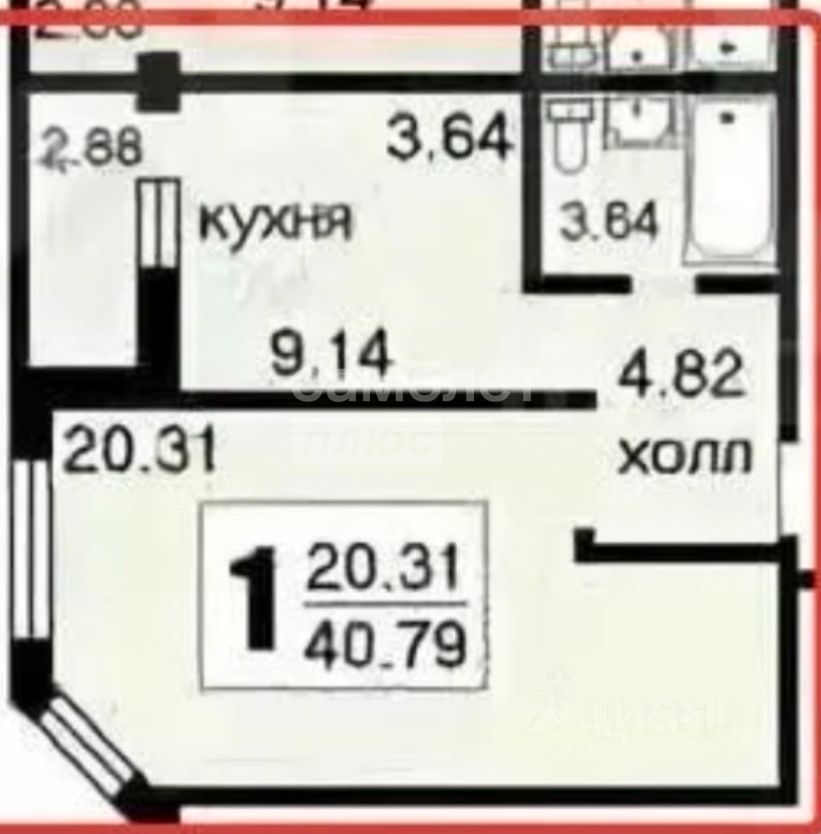 Общая площадь: 43,7 м²