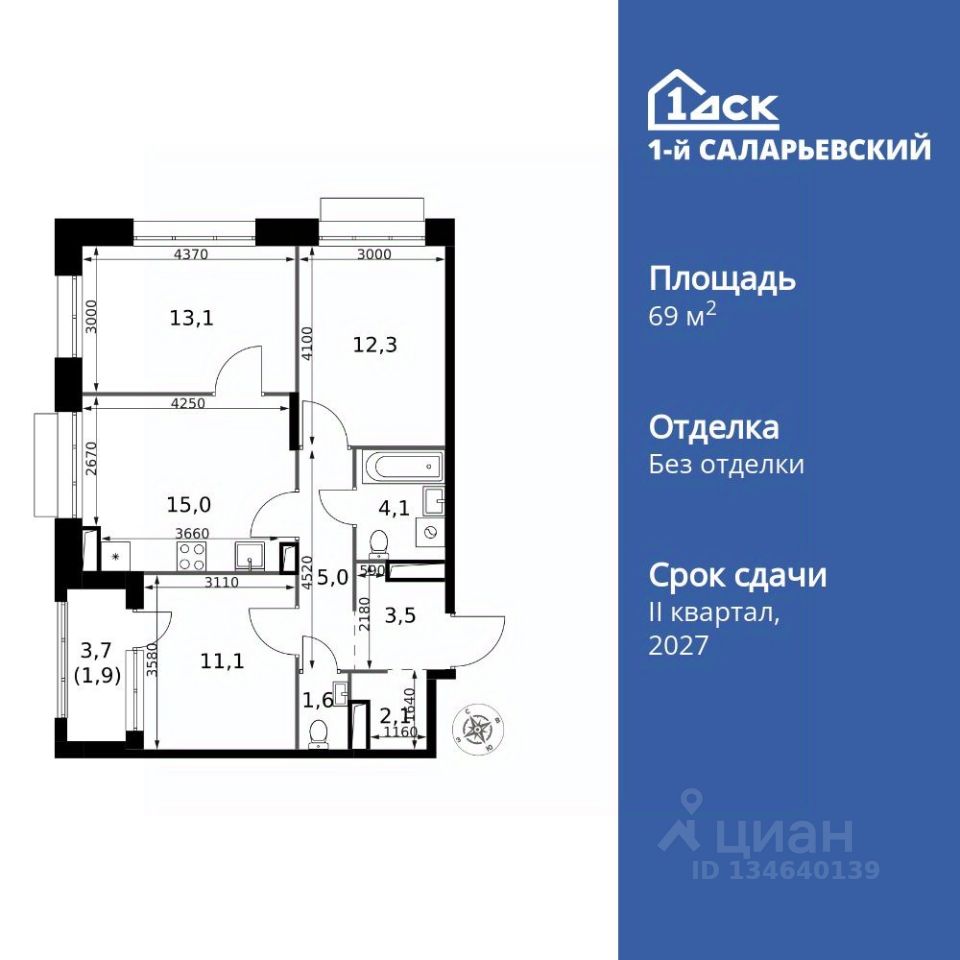 Продаётся 3-к квартира номер 433 общей площадью 69.7 кв.м. на 4-м этаже 21 этажного здания. Без отделки. Цена с учётом скидки.