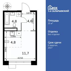Продаётся квартира-студия номер 683 общей площадью 25.9 кв.м. на 11-м этаже 25 этажного здания. Без отделки. Цена с учётом скидки.