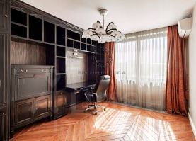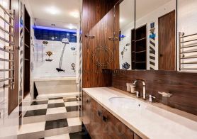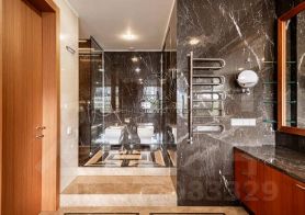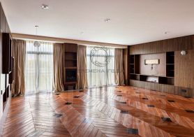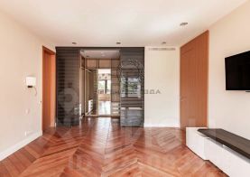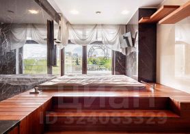 Планировочное решение: кухня с обеденной зоной и гостиной, мастер-спальня со своим санузлом, сауной, джакузи и гардеробной комнатой, две изолированные спальни, кабинет, два санузла, гардеробная комната, кладовая, постирочная, прихожая с гардеробом.