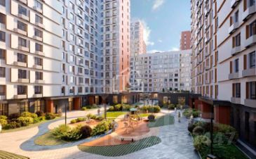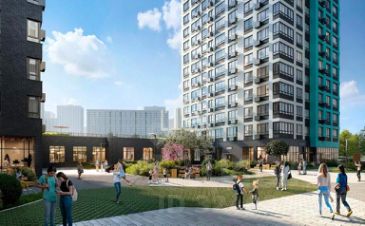 Монолитная постройка с дизайнерскими входными группами и облагороженной территорией со спортивными и игровыми площадками;
