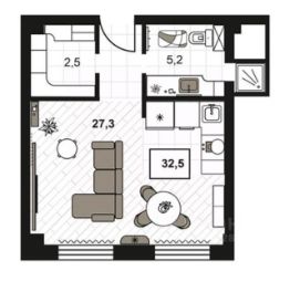Площадь — 32,3 м² | Этаж — 5 из 14 | Без отделки | Высота потолков — 3,2 м