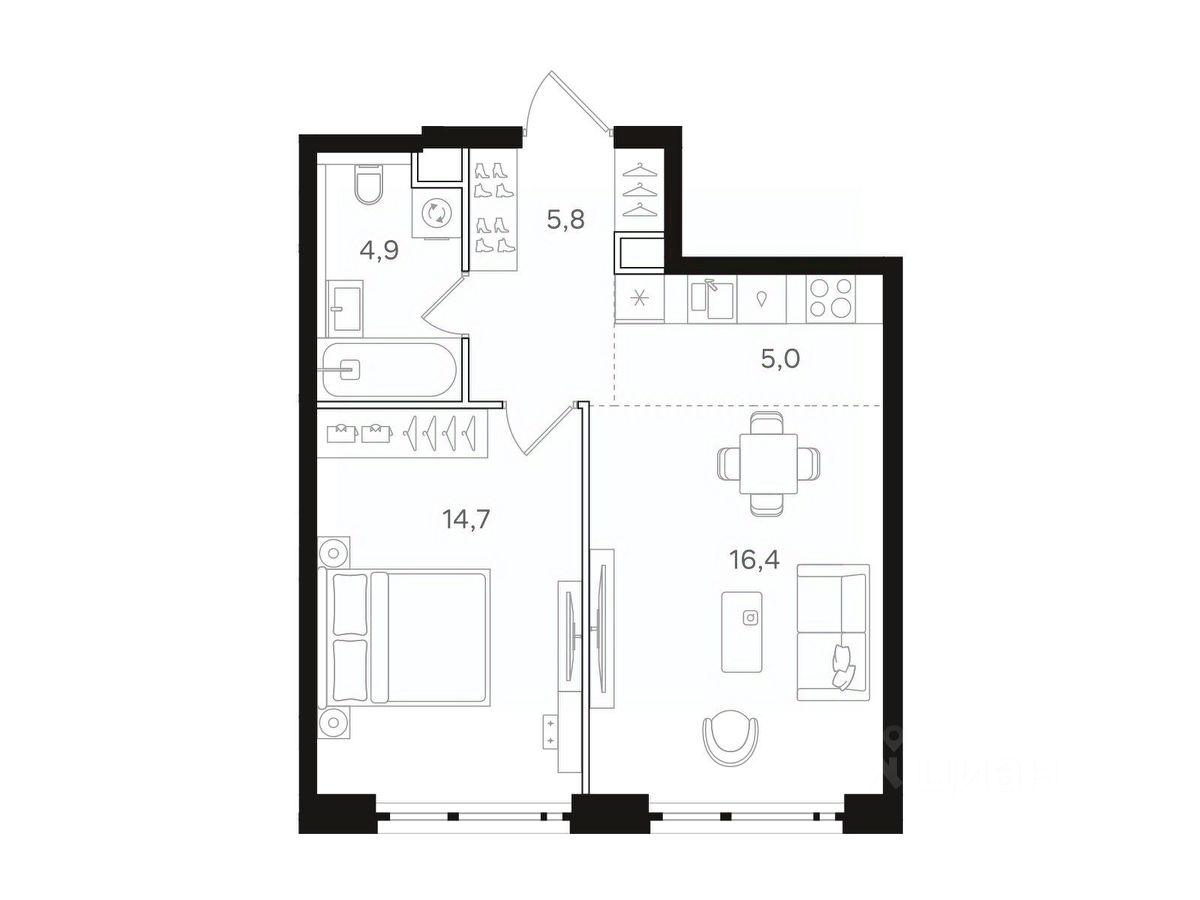 Общая площадь - 46.80