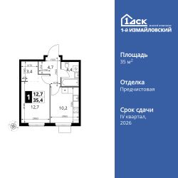 Продаётся 1-к квартира номер 527 общей площадью 35.4 кв.м. на 23-м этаже 23 этажного здания. Отделка Whitebox. Цена с учётом скидки.