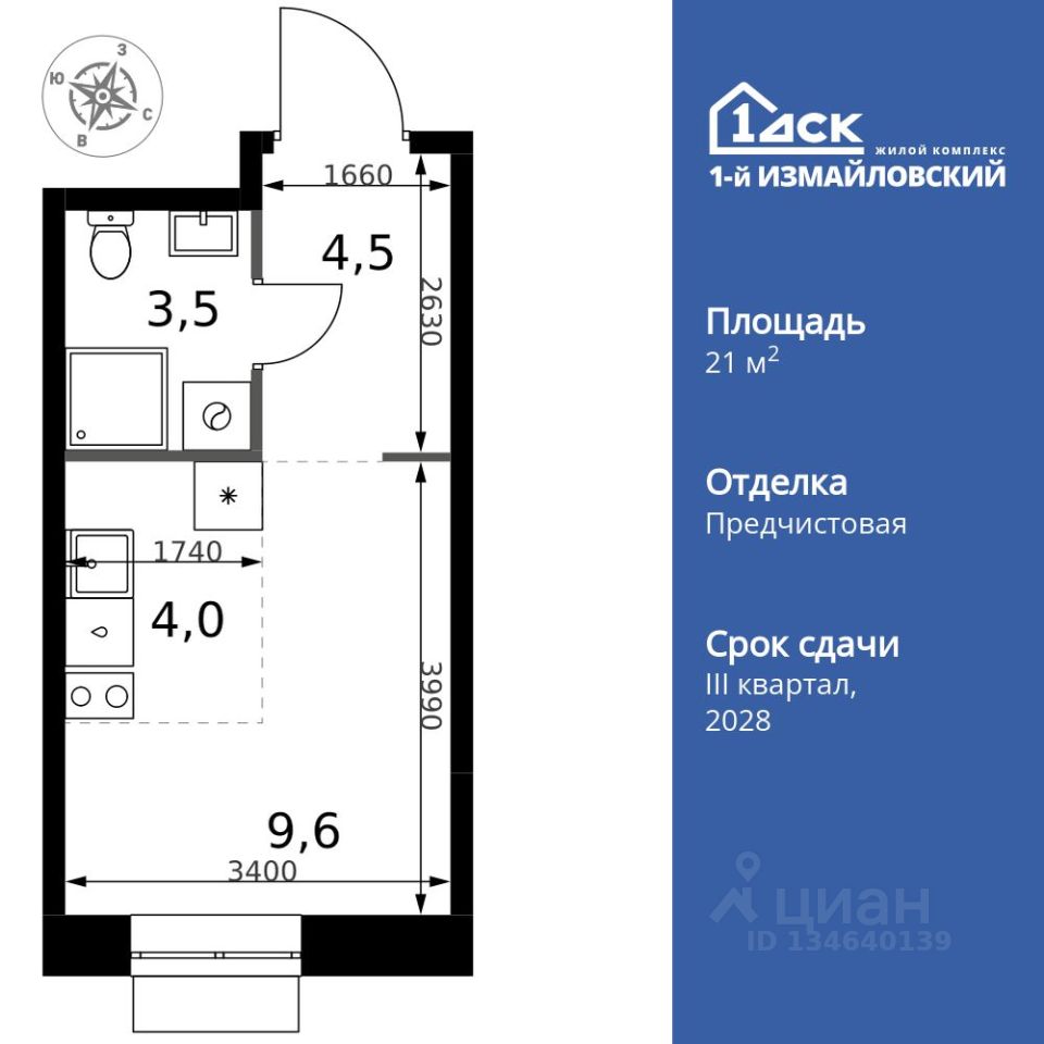 Продаётся квартира-студия номер 544 общей площадью 21.6 кв.м. на 10-м этаже 32 этажного здания. Отделка Whitebox.