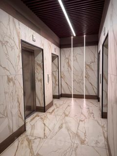 В подъезде красивый ремонт. Консьерж, охрана. 4 скоростных лифта + лифт в подземный паркинг. В доме салоны красоты, аптека, магазины.