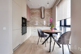 Кухонный гарнитур полностью укомплектован встроенной бытовой техникой премиального класса; санузлы оборудованы европейской сантехникой.