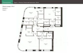 Функциональная планировка включает в себя гостиную, кухню с обеденной зоной, мастер спальню с кабинетом, ванной и гардеробной комнатами, детскую спальню с ванной комнатой, третью спальню, при которой есть свой кабинет, гардеробная, кухня и ванная комната. При необходимости эти помещения могут использоваться как отдельная квартира.