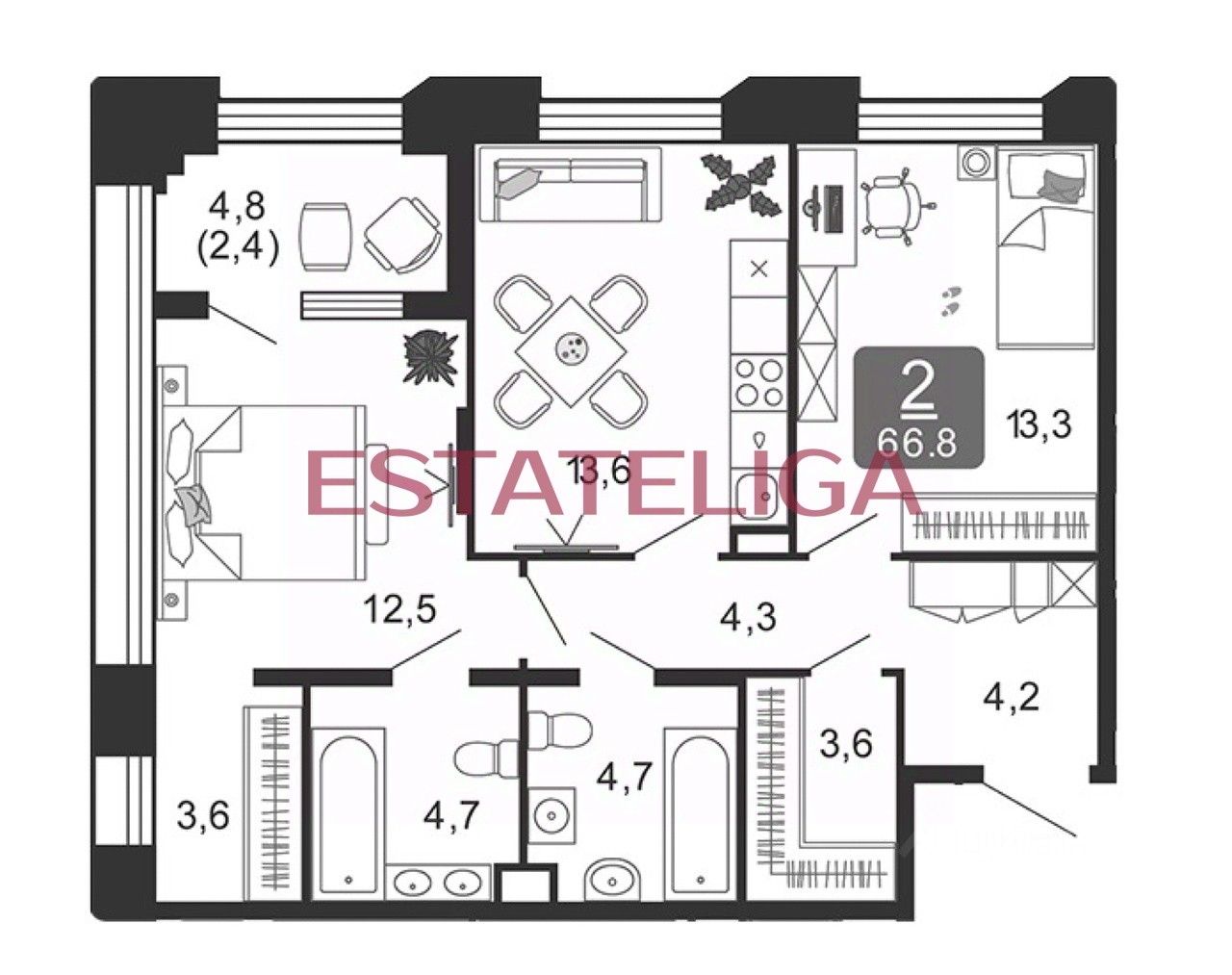 Id 58348. Продаётся евро 3 комнатная в ЖК "Shagal ".