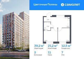 Строим кварталы для жизни с заботой о будущем. Предлагается 2-комнатная квартира комфорт-класса 39,21 кв.м в корпусе 11 на 7 этаже, в ЖК "Цветочные Поляны"