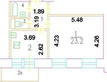 Удачная и функциональная планировка: большая комната квадратной формы с двумя окнами, площадью 23,2 кв. м; просторная кухня 9,4 кв. м с выходом на балкон площадью 3,55 кв. м. Санузел раздельный. Просторный коридор с нишей под встроенный шкаф.
