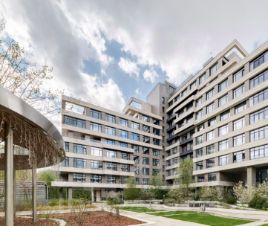 Комплекс состоит из нескольких монолитных корпусов с панорамным остеклением, выполненных в современном архитектурном стиле.
