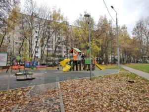 Ухоженный двор, детская площадка, прогулочные дорожки.