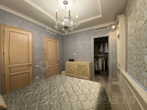 Выполнена по дизайн-проекту в американском стиле, полностью меблирована, 4-комнатная квартира, их которых 3 изолированные комнаты с вместительными гардеробными и огромную зону гостиной с зоной столовой около 40 кв. м., изолированную кухню 14 кв.м., 2 санузла (один в мастер-спальне и гостевой санузел с душевой кабиной). Комнаты на все стороны-двор, парк, Рублевское шоссе, потолки 3.10 и 3м. Огромные окна из лиственницы, дубовый паркет Версаль отменного качества, деревянные эксклюзивные французские двери, французская, немецкая и американская мебель из массива дерева, встроенная мебель на заказ, люстры, оригинальные светильники и хрусталь Ralph Lauren, уникальная высокохудожественная лепнина и кесонные потолки, мраморные подоконники и столешницы в санузлах. Имеет приточную вентиляцию и независимую систему кондиционирования в каждом помещении. Идеальна для семьи с одним или двумя детьми, с детской комнатой, имеющей библиотеку в мансардной зоне второго этажа и меловой стеной. Перепланировка согласована.